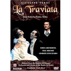 A review by Scott Hutton: "Of course Mme Gruberova is fabulous; that's how she exists. I direct your attention to Mr. Shicoff. I have been listening to and watching performances of La Traviata for approximately 50 years. I'm used to it. But I was amazed at Mr. Shicoff's acting in Act I, and blown away in Act II, Scene 1 (when I had to ask someone to bring on the Kleenex) and, at the end of Scene 2 found myself sobbing. Mr. Shicoff is the ONLY tenor of my 50 years listening who shows any acquaintance whatsoever with the writings of Dumas Pere et Fils. He's not pretty to look at, he doesn't try to eclipse everyone within miles of his stardome - he just recreates Alfredo. And breaks one's heart, for Dumas Fils was a gentleman to his fingertips and had a heart that could break. The only critique I have of this DVD is that Mr. Shicoff's Act II Scene 1 cavatina was cut. With an actor like him, we could have used it. Savored it. If there were more tenors around like him, but there aren't and never will be, this opera could be performed as "ALFREDO". Mr. Shicoff is the tenor who should have shared Traviata with Mme Callas".